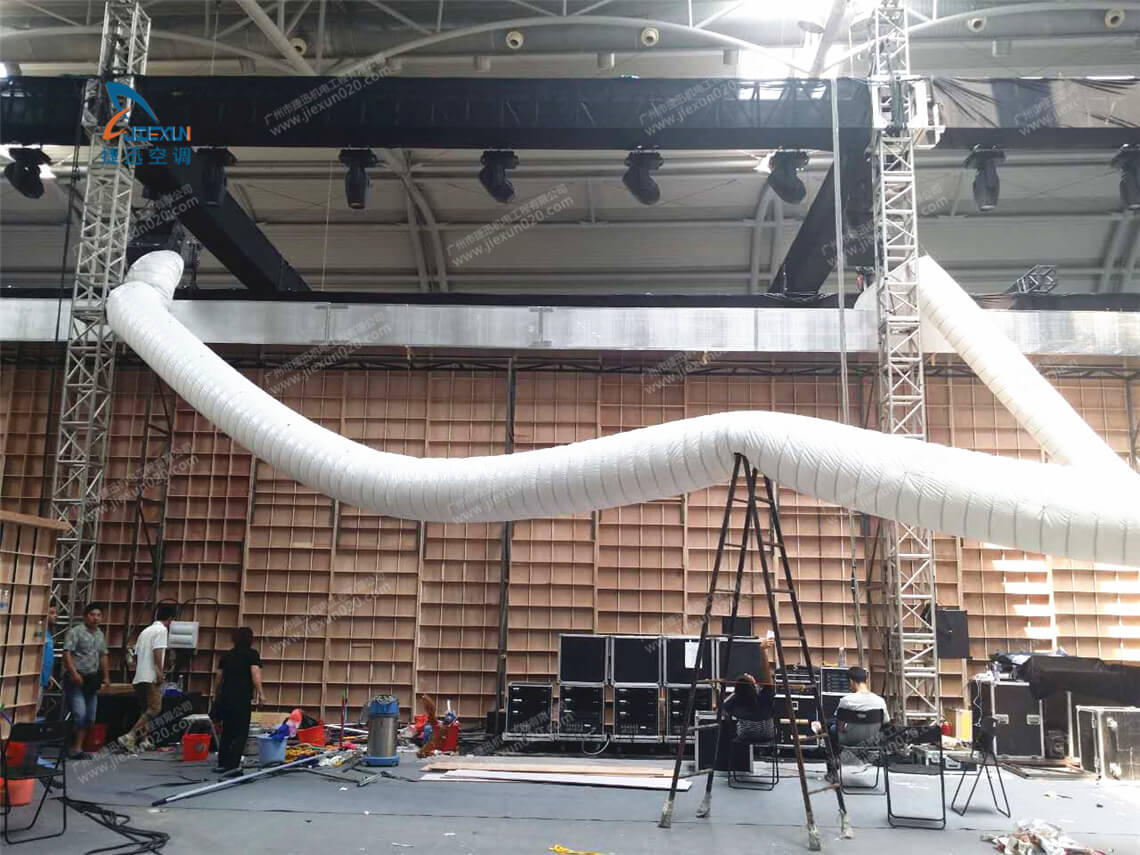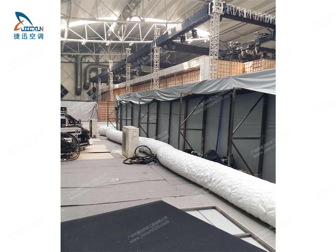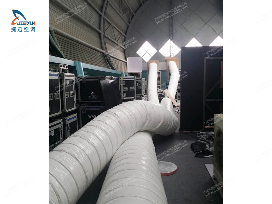 篷房空调是捷迅租赁公司研发的一款专用于临时商业活动使用的空调出租设备,一体式的机组设计,避免了拆卸时铜管的破裂而导致了空调雪种的流失,同时简化了安装流程,即插电就可开机使用;篷房空调运行时产生的噪音低于65分贝,既不影响沟通也不影响影视拍摄现场。
