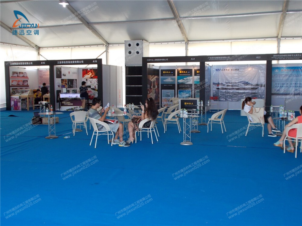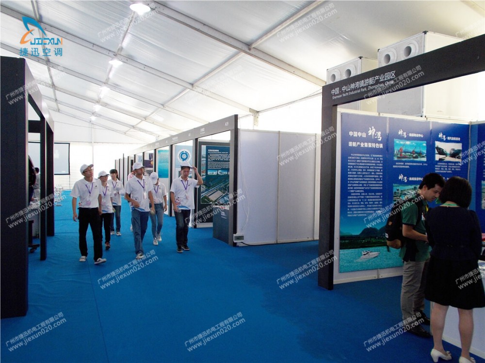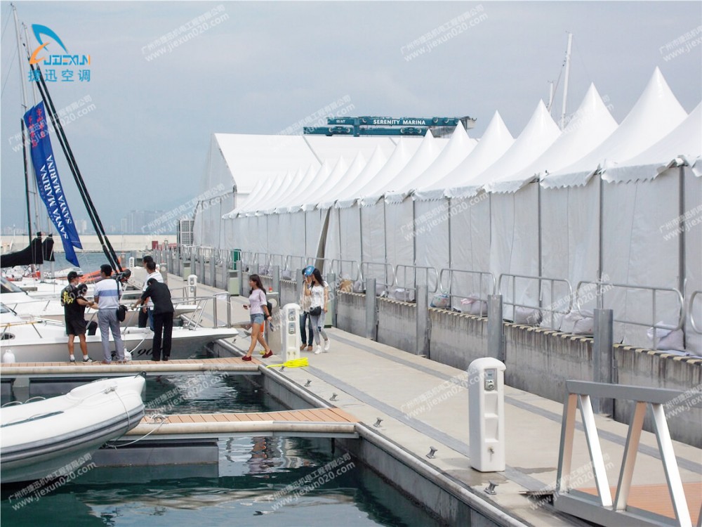 捷迅机电租赁公司助力“世界游艇盛典”,向盛典的临时篷房出租篷房空调,解决室内冷气需求。